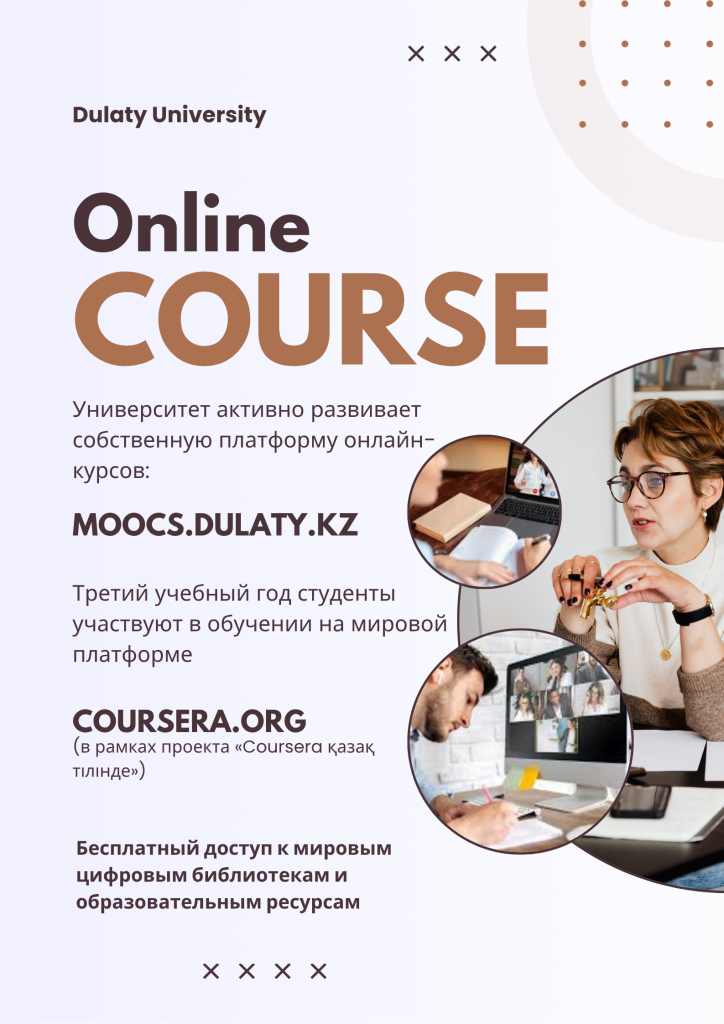 Также для студентов и всех желающих Дулати Университет запустил собственную платформу МООК — moocs.dulaty.kz, на которой размещено более 60 МООК по разным научным направлениям.
